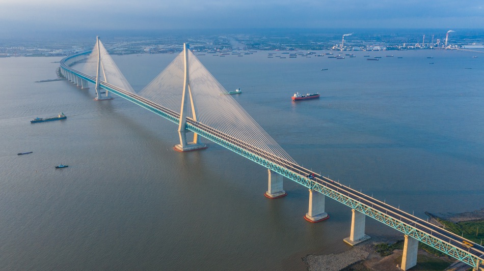 澎湃新聞記者從中國國家鐵路集團有限公司(以下簡稱國鐵集團)獲悉,7月1日,我國自主設(shè)計建造、世界上首座主跨為千米級的滬蘇通長江公鐵大橋建成,與滬蘇通鐵路同步開通運營。