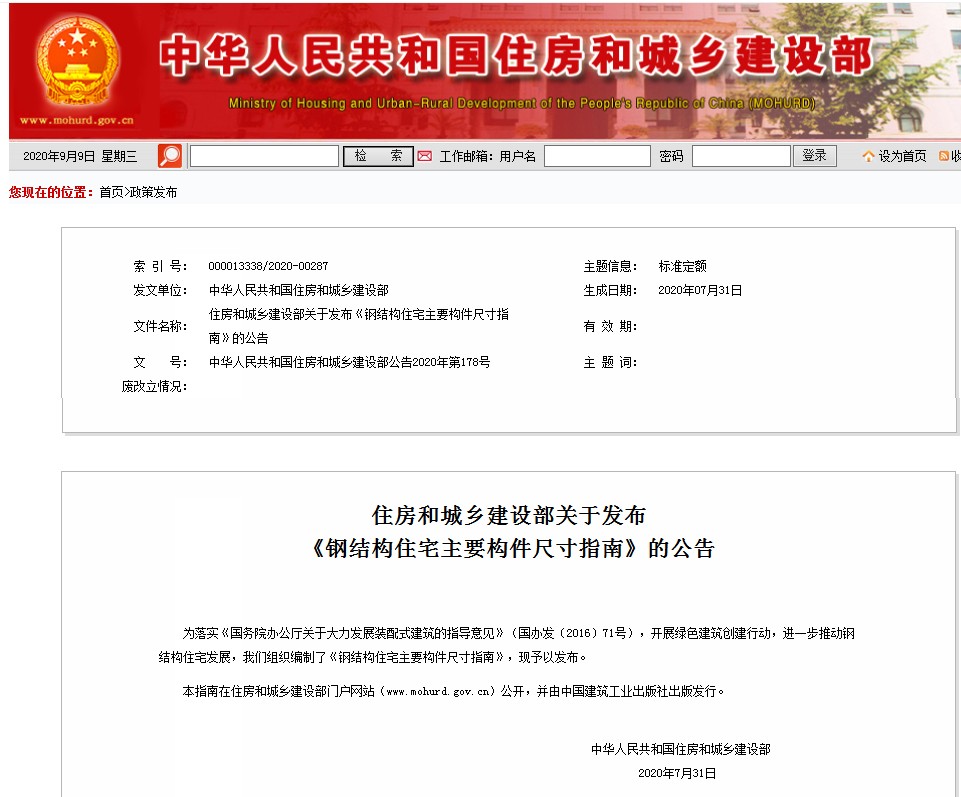 為落實《國務(wù)院辦公廳關(guān)于大力發(fā)展裝配式建筑的指導(dǎo)意見》、開展綠色建筑創(chuàng)建行動、進一步推動鋼結(jié)構(gòu)住宅發(fā)展,住房和城鄉(xiāng)建設(shè)部組織編制了《鋼結(jié)構(gòu)住宅主要構(gòu)件尺寸指南》,并于日前印發(fā)。
